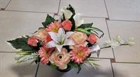 Photo non contractuelleGerbe en pot en fleurs de soie saumon