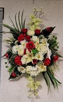 Couvre cercueil en fleurs de soie avec une carte ou un ruban - Couleurs peuvent varier (photo non contractuelle - livraison dans les 24 heures)