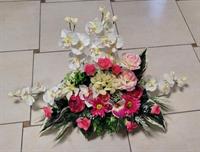 Montage allongé et en hauteur de fleurs en soie (photo non contractuelle - livraison dans les 24 heures)