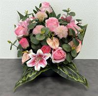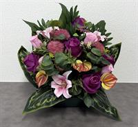 Bouquet bulle bien lesté avec des roses, du lilas, des hortensias, frezias. Dim : 30cm de hauteur : 30cm de large. ATTENTION : COMMANDE AU PLUS TARD LE SAMEDI JUSQU'A MIDI POUR LES OBSEQUES QUI ONT LIEU LE LUNDI. Nos articles en ligne sont exclusivement disponibles pour les funérailles que nous organisons. Aucun envoi par colis n'est proposé.
