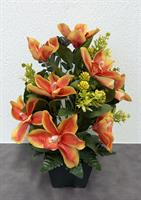 Composition de fleurs tergal dans un pot lesté avec des roses et orchidées. Dim : 42cm de hauteur : 40cm de large. ATTENTION : COMMANDE AU PLUS TARD LE SAMEDI JUSQU'A MIDI POUR LES OBSEQUES QUI ONT LIEU LE LUNDI. Nos articles en ligne sont exclusivement disponibles pour les funérailles que nous organisons. Aucun envoi par colis n'est proposé.