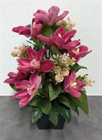 Composition de fleurs tergal dans un pot lesté. Branches d'orchidées. Dim : 48cm de hauteur : 23cm de large. ATTENTION : COMMANDE AU PLUS TARD LE SAMEDI JUSQU'A MIDI POUR LES OBSEQUES QUI ONT LIEU LE LUNDI. Nos articles en ligne sont exclusivement disponibles pour les funérailles que nous organisons. Aucun envoi par colis n'est proposé.