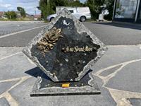 Plaque en granit 20 X 15 cm. Inter à personnaliser à 5 euros. Placez le texte de l'inter à la place du ruban. Ne pas mettre de texte trop long pour une meilleure lisibilité.